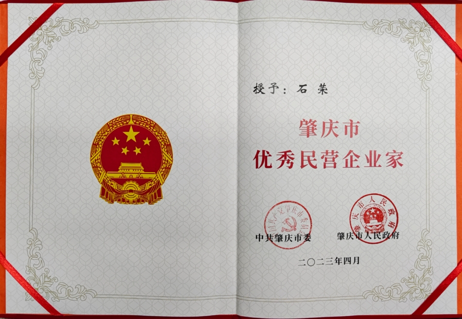 我司董事長石榮獲評為“”肇慶市優(yōu)秀民營企業(yè)家”,這是對石榮在企業(yè)經(jīng)營管理方面所作貢獻的認可。他踐行卓越績效的管理模式,重視員工培訓(xùn)和發(fā)展,同時注重產(chǎn)品質(zhì)量和客戶服務(wù),為企業(yè)的發(fā)展奠定了堅實的基礎(chǔ)。